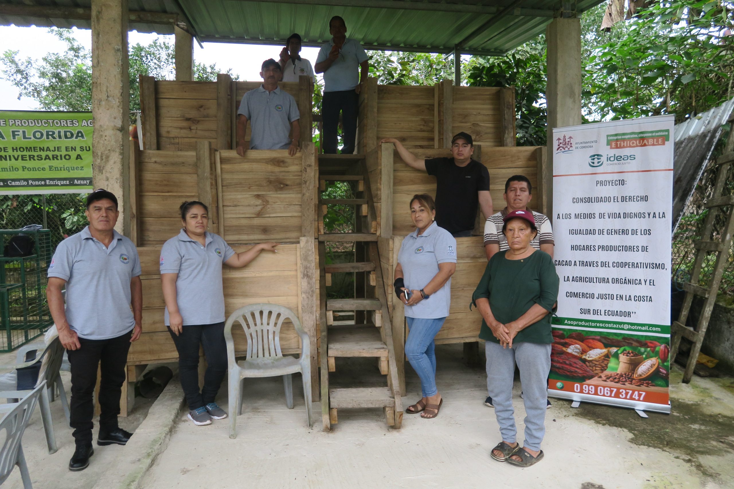 - Renovación y ampliación de las infraestructuras de fermentación y secado de cacao. Para las pequeñas asociaciones, es difícil reunir fondos e invertirlos en infraestructuras que a veces son vitales. Por ejemplo, en un clima tan húmedo como el de la costa sur de Ecuador, es necesario secar las semillas de cacao para que no se pudran. El proyecto ha comprado dos máquinas secadoras nuevas y renovado las existentes para que sean más eficientes, y se reduzca así, el coste de producción. También ha aumentado la capacidad de fermentación de cacao con nuevos cajones fermentadores que permitirán fermentar lotes mas grandes de cacao.