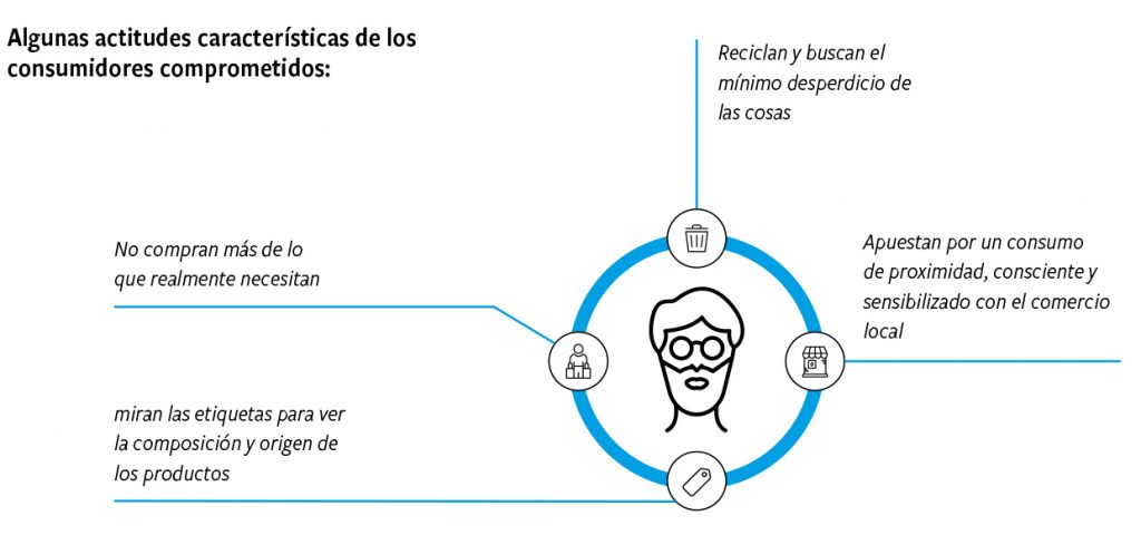 Afortunadamente en estos últimos años crece un tipo de consumidor comprometido que se caracteriza por ser cívico y curioso, dar importancia a lo colectivo por delante de lo individual, buscar la colaboración con los demás, tratar de ser coherente en sus decisiones y sentirse corresponsable con sus acciones. Estas son sus características: