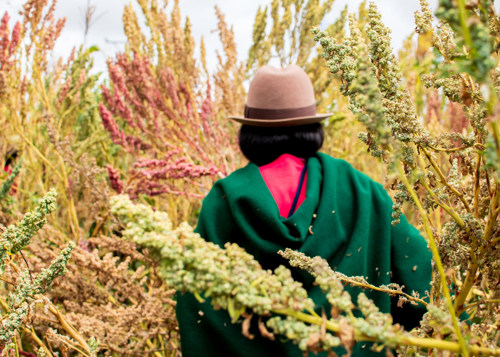 Dolores Yautibug, de la comunidad productora de Quinoa Calancha en Colta, Chimborazo (Ecuador). Trabaja en la quinua, un grano con grandes propiedades nutritivas que fue la base de la alimentación de las civilizaciones andinas durante siglos, y aún hoy, es el principal cultivo de la región. Dolores ejemplifica cómo el trabajo de las mujeres sostiene la producción agrícola local. Por eso, son mujeres como ella las principales defensoras del territorio, guardianas de las semillas que luchan por mantener sus cultivos de forma sostenible, protegiendo las variedades locales y el medio ambiente. |