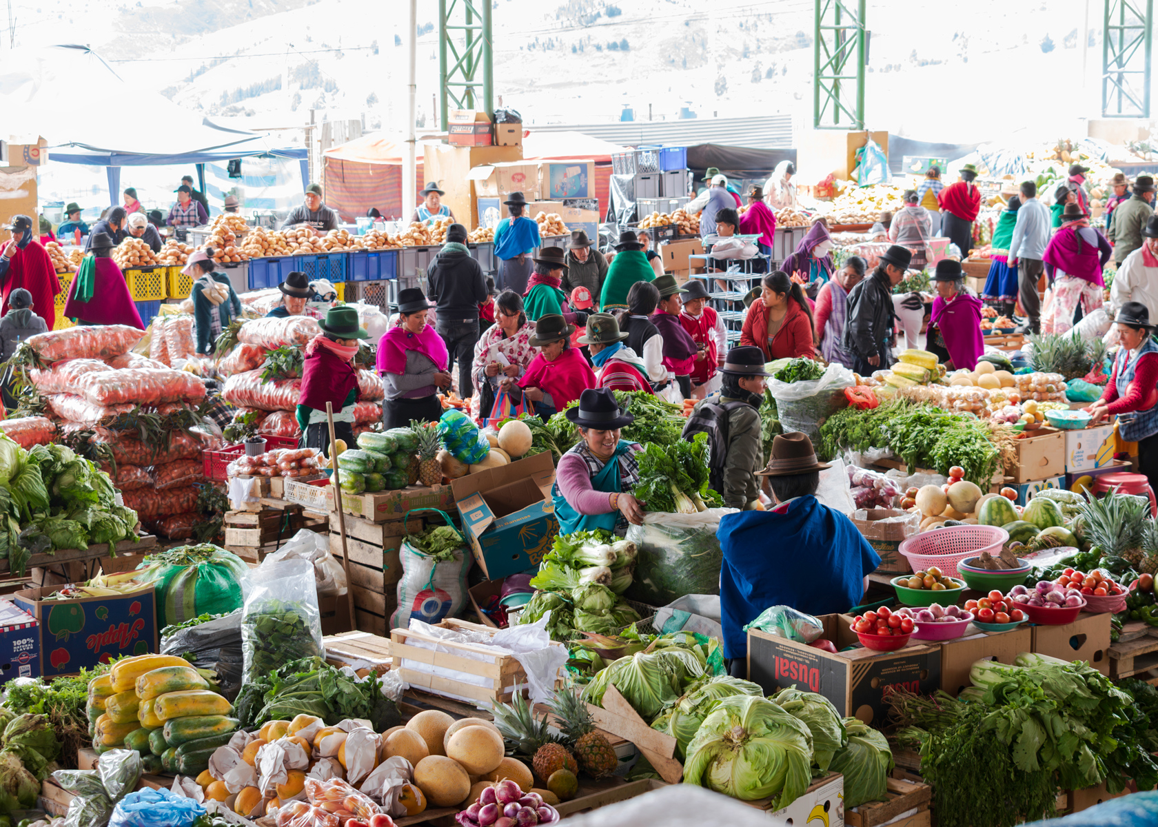 El mercado de Guamote, en Chimborazo, es uno de los más importantes de la Sierra ecuatoriana y se celebra cada jueves. Este espacio permite a las pequeñas productoras vender papas, maíz, habas, hortalizas y frutas, junto con ganado, artesanías y textiles directamente sin intermediarios. El proyecto apoya la consolidación de sus puntos de venta en este mercado, pero también las ayuda a abrir nuevos puestos en espacios innovadores, como el campus de la Universidad Politécnica del Chimborazo, donde ofrecerán sus productos a miles de miembros de la comunidad universitaria. |