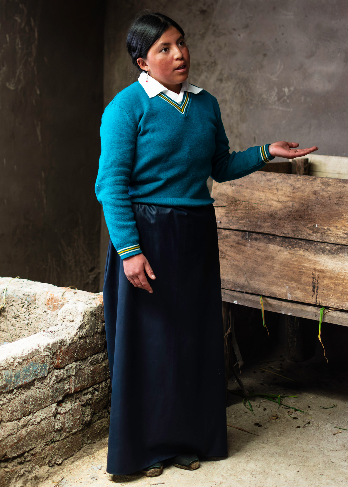 Carmen Valeria Apugllón, alumna de la Unidad Educativa Comunitaria Intercultural Bilingüe Atahualpa, aprende el cuidado de cuyes. En la Sierra centro del Ecuador, el cuy es un alimento tradicional de gran valor nutricional; su crianza y aprovechamiento forman parte de la formación que recibe el alumnado. El proyecto ha aportado la infraestructura necesaria para capacitar al alumnado en técnicas sostenibles de cuidado de huerta y ganado, con el objetivo de poder trasladar estos saberes también a las familias y a la comunidad. |