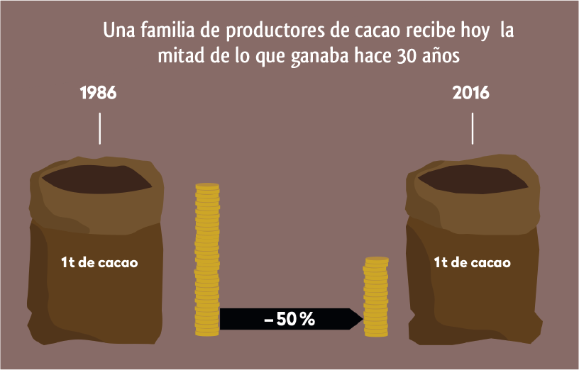 En el verano de 2019, Ghana y Costa de Marfi tomaron una decisión histórica, llegar a un acuerdo para pagar un precio «justo» por el cacao. Ambos países son los principales países exportadores de cacao en los que más de la mitad de los productores y productoras viven en condiciones de extrema pobreza. Sin embargo Costa de Marfil acaba de dar un paso atrás bajando los precios un 25%. Las ONG denuncian la influencia de las multinacionales.