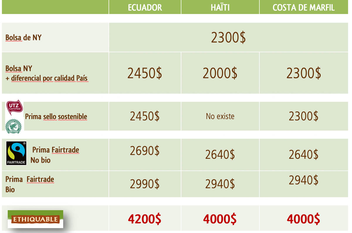 Algunos ejemplos de lo que pagan a los grupos productores entidades y sellos de Comercio Justo