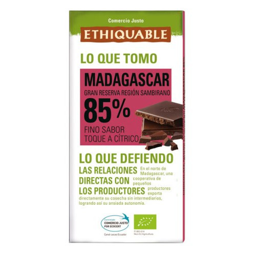 El Valle de Sambirano ofrece un cacao atípico Trinitaro con notas cítricas típicas. El 85% de contenido de cacao de esta tableta es capaz de mejorar estos aromas ácidos sin amargor.