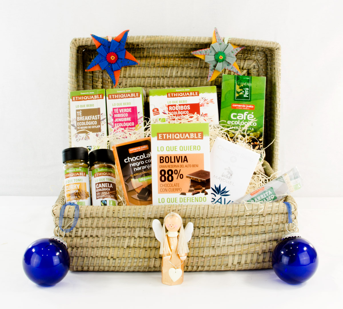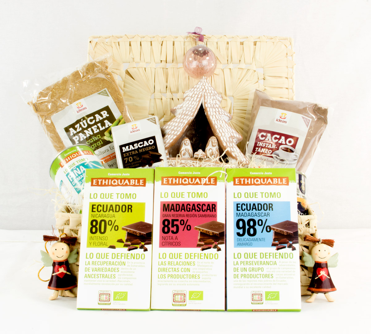 Queremos que nuestras propuestas de cestas sirvan para daros ideas de regalos más justas y sostenibles que potencian otro modelo de consumo. Ahhh y la artesanía también es de Comercio Justo. Podéis pedir nuestros productos en vuestra tienda habitual, o si sois clientes, en www.tienda.ideas.coop. Os haremos llegar vuestra cesta por encargo. Hay un montón de opciones. Esperamos que os gusten.
