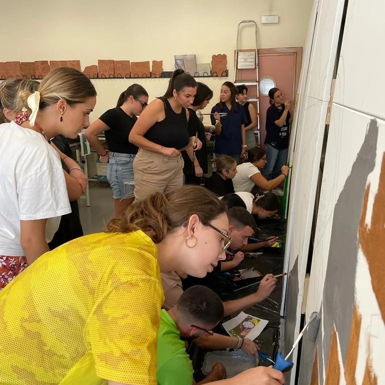 El mural ha sido elaborado por 71 alumnas y alumnos de la asignatura “La expresión artística en la intervención socioeducativa” de cuarto grado de Educación Social de la Facultad de Educación de la Universidad de Córdoba. La obra ha sido diseñada de forma participativa a través de un proceso educativo y de reflexión colectiva que usa la expresión artística para representar y transmitir las ideas del alumnado sobre temas complejos.